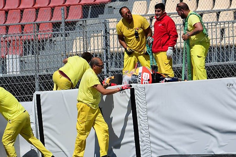 Jorge Lorenzo a commenté : « dans certains coins, il y a vraiment très peu de place pour une chute à Barcelone. Le gravier ne m’a pas ralenti, alors j’ai frappé les Air Fences. Ensuite, j’ai vu la moto dehors derrière la clôture à l’extérieur de la piste. C’était très effrayant au début, parce que j’avais mal au dos. Mais les vérifications ont montré qu’heureusement rien n’est cassé. Je suis remonté sur la moto. J’avais très mal et je ne pouvais donc plus exercer de pression correctement. Il était important que nous essayions tout ce que nous avions sur notre plan de travail ».