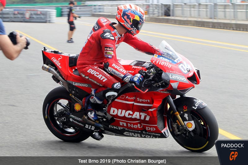 Andrea Dovizioso a connu la défaite en République Tchèque et sa seconde place derrière Marc Márquez n’aura été qu’une maigre consolation. Car la Honda frappée du 93 a été intouchable. Il faut donc se remettre à l’ouvrage à Borgo Panigale et le test de Brno était là pour ça. « Ducati n’arrête jamais de travailler et la pression que l’usine exercice sur ses fournisseurs est particulière forte » avoue DesmoDovi qui ajoute cependant : « nous n’avons pas de plan précis. Peut-être aurons nous des nouveautés pour le test de Misano ».