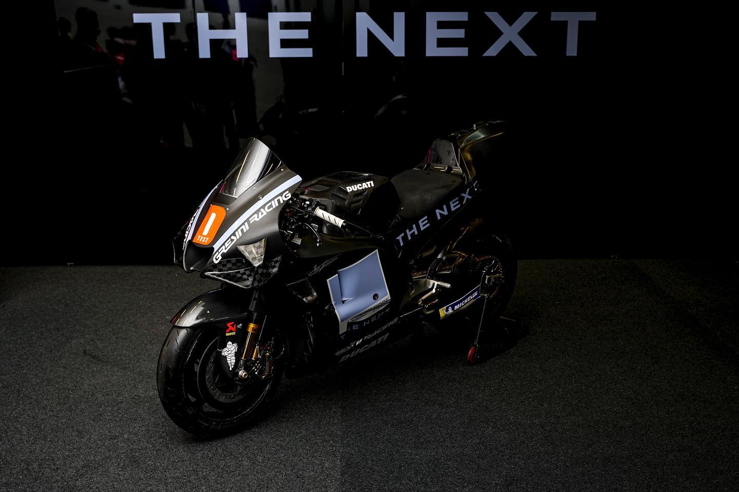En effet, la nouvelle ère du Gresini Racing Team a officiellement commencé avec des photos, des présentations à la presse des deux pilotes et de la nouvelle Ducati Desmosedici, dont la livrée finale sera à découvrir en 2022. Nadia Padovani, la nouvelle propriétaire de l’équipe après le décès de son mari Fausto Gresini, fait face à la défection de Flexbox, qui devait initialement être le sponsor principal de l’équipe, avec cette inscription bien visible « The Next » sur les carénages.