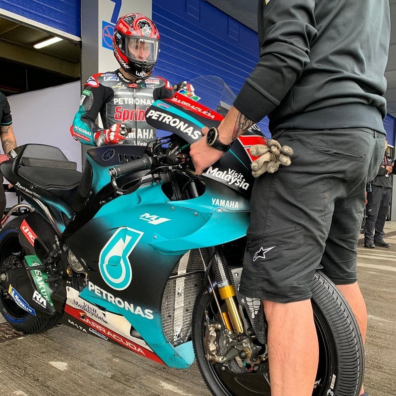 Plusieurs pilotes décidaient de rouler malgré les conditions défavorables, afin de découvrir les possibilités de leurs machines améliorées pour 2020, qu’ils ne retrouveront qu’en février à Sepang. C’était notamment le cas ici de Fabio Quartararo :
