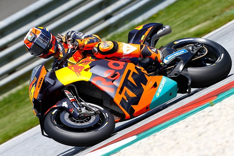 Tout le monde avait des masques, ce matin, sur le Red Bull Ring, mais au vu des yeux plissés, on devinait une joie, un soulagement, et une bonne humeur de se remettre au travail sur la RC16 chez KTM. Le directeur sportif de la marque a ainsi commenté à Günther Wiesinger de Speedweek.com d’où viennent les clichés : « entendre à nouveau ce son de moteur est tellement mieux que d’étudier des cas de coronavirus pendant des jours… »