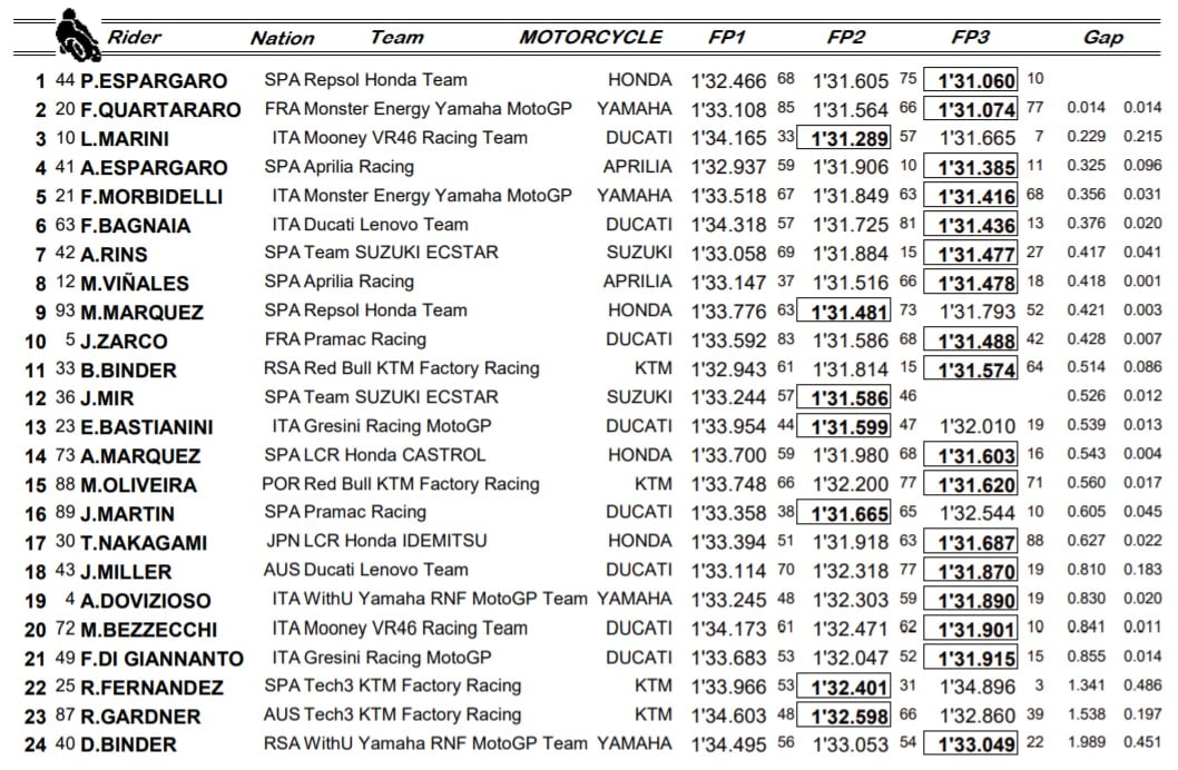Quand nous sommes arrivés ici j’espérais faire un peu mieux, mais mon poignet est toujours assez douloureux, et nous n’avons pas réussi à trouver une bonne direction dans le développement de la moto donc c’est vrai que cela a été un peu difficile pour nous pour être honnête. Mais au moins nous avons réussi à boucler beaucoup de tours, ce qui est probablement la chose la plus importante pour le moment. J’espère simplement que les deux prochaines semaines vont permettre à mon poignet de bien récupérer.