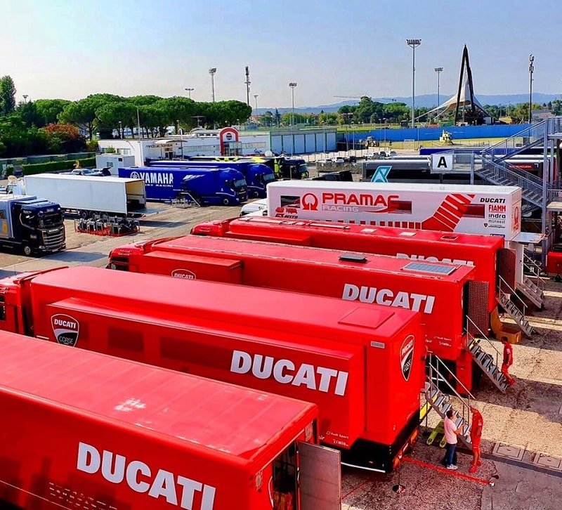 Ducati n’est pas venu les mains dans les poches. Le gros matériel est là (et Gigi en bas à droite). (Photo by Misano World Circuit)