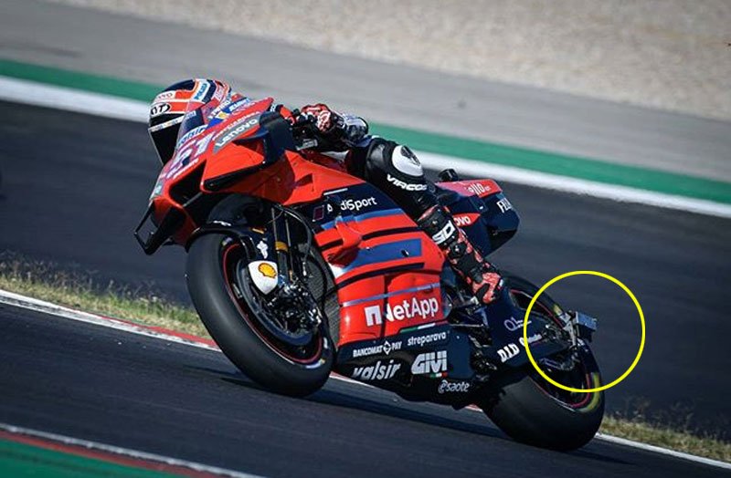 L’Italien utilise toujours des lasers montés de chaque côté du bras oscillant de sa Ducati GP20 pour numériser le comportement du train arrière.