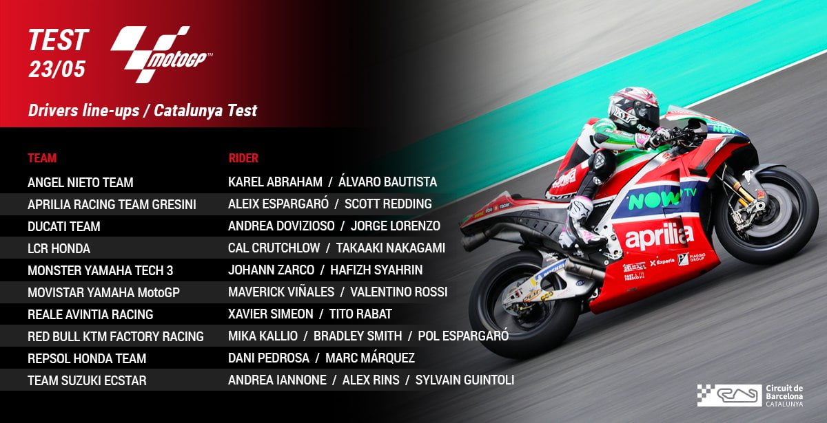 Après le Grand Prix de France, et dans des conditions parfois un peu rocambolesques, la plupart des pilotes se sont en effet retrouvés en Catalogne pour participer à une séance d’essais privés sur le Circuit de Catalogne organisée pour évaluer les pneus et recueillir des données sur la nouvelle surface de la piste dont le tracé inclut dorénavant un retour à l’avant-dernier virage original au lieu de la chicane semi-F1.