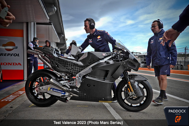 Ceux-ci se sont déroulés mardi et mercredi dernier, avec Stefan Bradl et Tetsuta Nagashima au guidon. On se rappelle que ce dernier était absent au dernier test officiel à Valence, laissant ainsi les pilotes officiels Joan Mir, Luca Marini, Johann Zarco et Takaaki Nakagami découvrir le prototype 2024. Un prototype particulièrement apprécié par Joan Mir qui voit en cette ébauche essayée une seule journée le premier vrai pas en avant fait par Honda depuis son arrivée (Voir ici).
