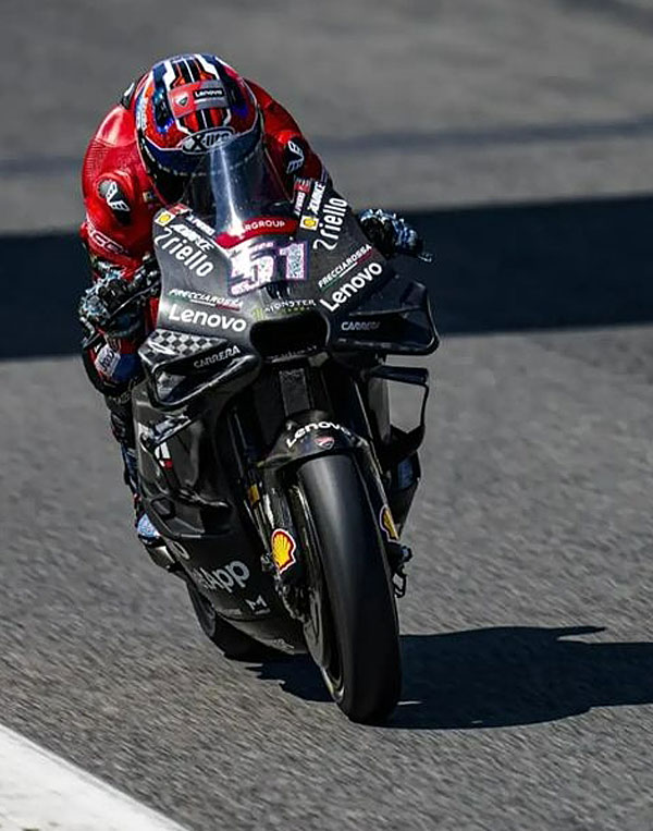 Les deux pilotes officiels Ducati ont roulé de concert avec Michele Pirro qui, lui, disposait d’une Desmosedici GP23. La veille, le pilote d’essai Ducati avait chuté à Arrabbiata 2 en se luxant l’épaule droite, ce qui aurait pu compromettre sa wildcard au Grand Prix d’Italie. Mais heureusement, l’articulation a pu rapidement être remise en place, ce qui a permis au pilote des Pouilles de venir à bout de son programme d’essai le mercredi malgré une nouvelle petite chute.