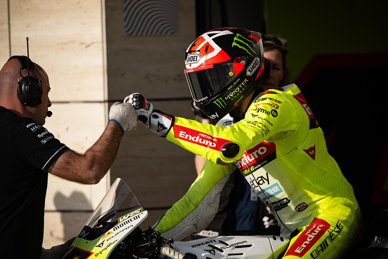 Si l’on se rappelle que le pilote du Pertamina Enduro VR46 Racing Team avait terminé 7e lors du test à Valence en novembre dernier, on peut dire que le Romain de 25 ans représente dorénavant une valeur sûre du top 10, sur un tour chrono et même plus, comme en témoigne sa première victoire acquise au Qatar pour l’avant-dernier Grand Prix de la saison 2023.