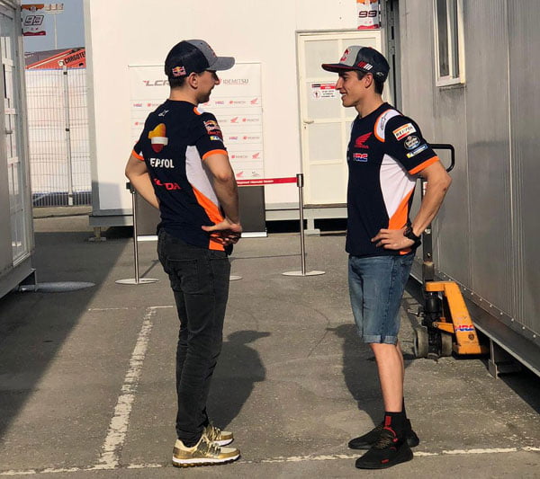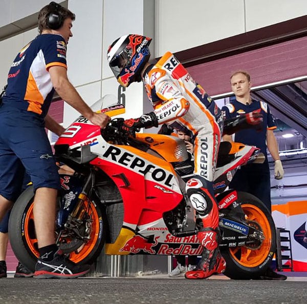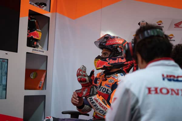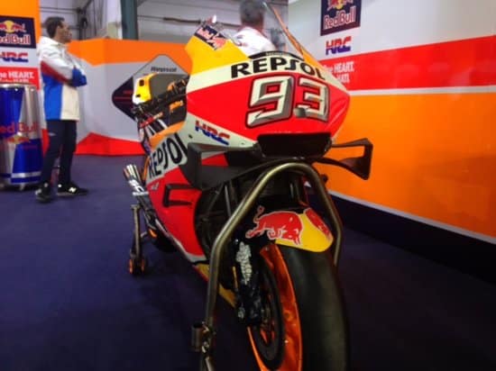 Chez Honda, Marc Márquez produit son effort et allument les secteurs intermédiaires en rouge mais n’améliore pas son chrono. Lui et Jorge Lorenzo disposent des ailerons « Star Wars » agrémentés d’appendices latéraux. Mais le mystère du jour ne résidait pas là, mais bien dans le box du Majorquin où ne figurait pas de 2e moto…
