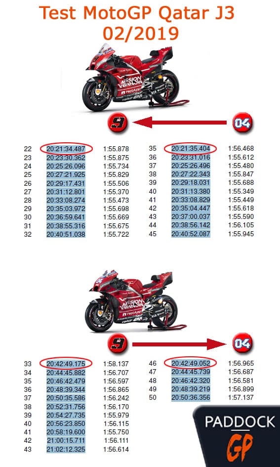 Il est intéressant de noter qu’à partir de ce moment, le rythme des deux hommes s’est ralenti, et Andrea Dovizioso a même fini par s’arrêter alors que Danilo Petrucci effectuait encore 6 tours supplémentaires pour aboutir à un total de 22 tours, soit la distance exacte de la course.
