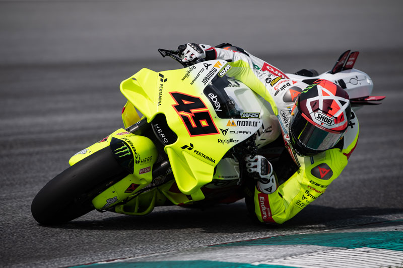 Pour la première fois en piste sur les Ducati Desmosedici GP23 jaune Fluo Stream du Pertamina Enduro VR46 Racing Team, Fabio Di Giannantonio et Marco Bezzecchi se sont immédiatement montrés parmi les plus rapides à la fin de la première journée de tests officiels du MotoGP sur le circuit de Sepang.