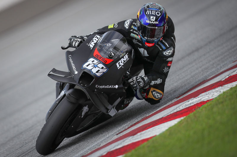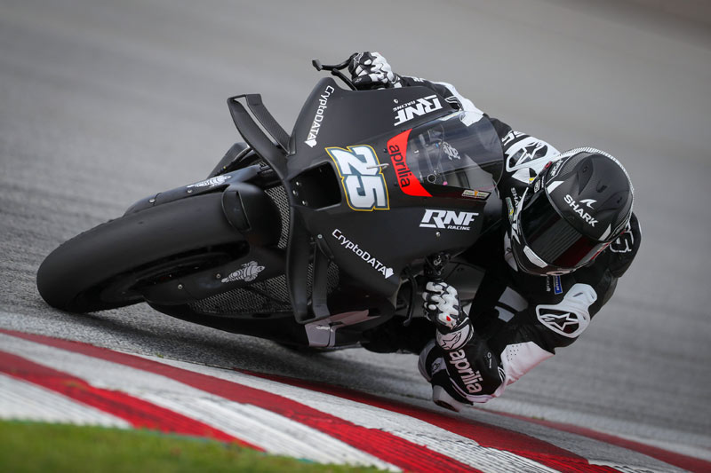 Lors de la première journée du test MotoGP à Sepang, il y a eu les Aprilia qui brillent, à commencer par celle de Maverick Viñales qui n’a manqué que d’un secteur pour se hisser tout en haut du tableau, et, bien plus loin, il y a eu les Aprilia du RNF MotoGP Team qui commence sa nouvelle aventure non seulement avec les hommes de Noale mais aussi avec Miguel Oliveira et Raúl Fernández.