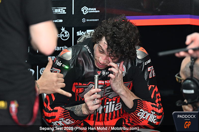 Et cela ne s’est pas avéré une reprise en douceur car, sans même parler des incidents qui ont impacté de plein fouet l’équipe Aprilia, certains pilotes sont apparus marqués après seulement quelques tours dans la chaleur malaisienne. A cet égard, ceux qui ont participé au shakedown ont semblé bénéficier d’un net avantage, déjà remis du décalage horaire et déjà un peu habitués aux conditions climatiques de la Malaisie en cette période hivernale.