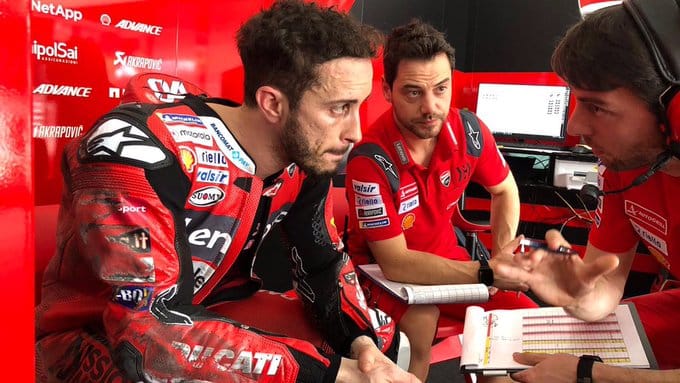 C’est un Andrea Dovizioso inquiet et chiffonné qui a quitté le tracé de Sepang ce samedi. La faute à une recherche infructueuse de performance avec sa nouvelle GP20 et à une chute apparemment sans gravité. Cependant, il faudra vérifier dimanche s’il n’y aura pas de gênes particulières pour poursuivre un travail de mise au point essentiel. Sur son accident, Dovi commente : « je n’attaquais pas. Je n’ai ouvert les gaz qu’après le virage 6 et j’ai perdu l’avant. Un accident vraiment lent et banal, mais je suis entré dans le gravier et je n’ai pas pu arrêter la moto. Le problème est toujours avec mon cou. J’ai pris un coup, je me sens un peu raide et j’espère que la situation ne va pas empirer ce soir car c’est mon point faible quand ces choses arrivent. »