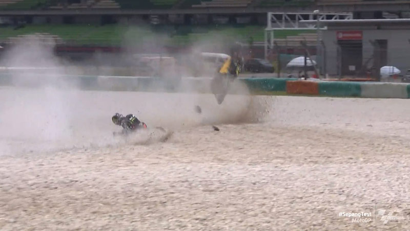 Pour Marco Bezzecchi (Mooney VR46 Racing Team), la deuxième journée du test MotoGP à Sepang a débuté de la même façon que la précédent : Avec une chute !