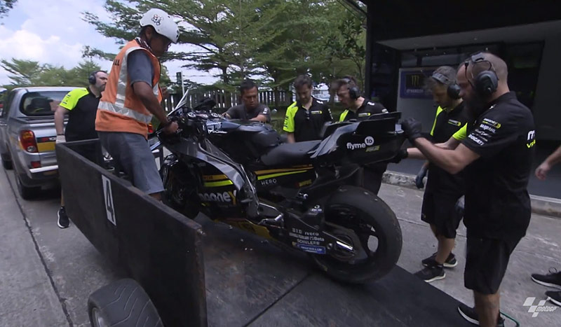 Mais si la première fut anodine et n’a pas empêché l’homme de Rimini de réaliser le meilleur temps du jour, c’est en boitant et avec une Ducati GP22 bien endommagée que l’Italien s’est relevé ce samedi matin en Malaisie.