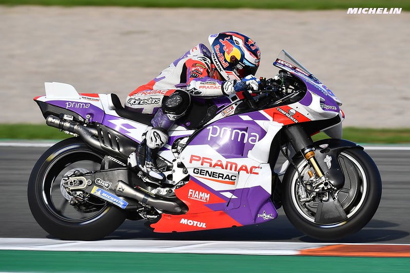 A l’inverse d’autres pilotes Ducati qui n’ont pas tari d’éloges sur le nouveau moteur de la firme de Borgo Panigale, Johann Zarco reconnaît avec honnêteté que le tourniquet de Valence ne se prête guère à une évaluation de puissance pure, mais que le V4 2023 a surtout été travaillé pour avoir plus de couple : « Sur une piste comme ça, c’est dur à dire, parce que même si on a un moteur plus ou moins puissant de quelques chevaux, il y a tellement de contrôle électronique que c’est dur à dire « oui, c’est plus puissant ». Je pense qu’en termes de puissance, on était déjà pas mal du tout, mais l’année 2022 on va dire que le moteur manquait un peu d’utilisation sur toute sa plage de régime. Et là, le but du nouveau, c’est avoir vraiment beaucoup plus de force dans le moteur, de couple, pour pouvoir mieux gérer toutes les phases d’accélération, et du coup, engendrer moins de mouvements sur la moto. »
