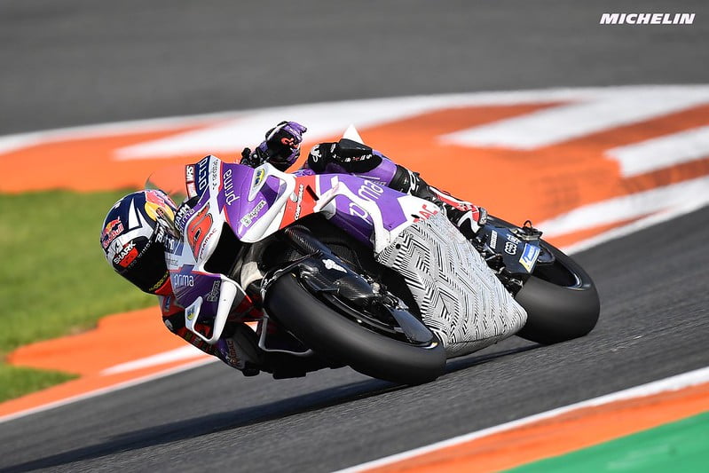 A l’inverse d’autres pilotes Ducati qui n’ont pas tari d’éloges sur le nouveau moteur de la firme de Borgo Panigale, Johann Zarco reconnaît avec honnêteté que le tourniquet de Valence ne se prête guère à une évaluation de puissance pure, mais que le V4 2023 a surtout été travaillé pour avoir plus de couple : « Sur une piste comme ça, c’est dur à dire, parce que même si on a un moteur plus ou moins puissant de quelques chevaux, il y a tellement de contrôle électronique que c’est dur à dire « oui, c’est plus puissant ». Je pense qu’en termes de puissance, on était déjà pas mal du tout, mais l’année 2022 on va dire que le moteur manquait un peu d’utilisation sur toute sa plage de régime. Et là, le but du nouveau, c’est avoir vraiment beaucoup plus de force dans le moteur, de couple, pour pouvoir mieux gérer toutes les phases d’accélération, et du coup, engendrer moins de mouvements sur la moto. »