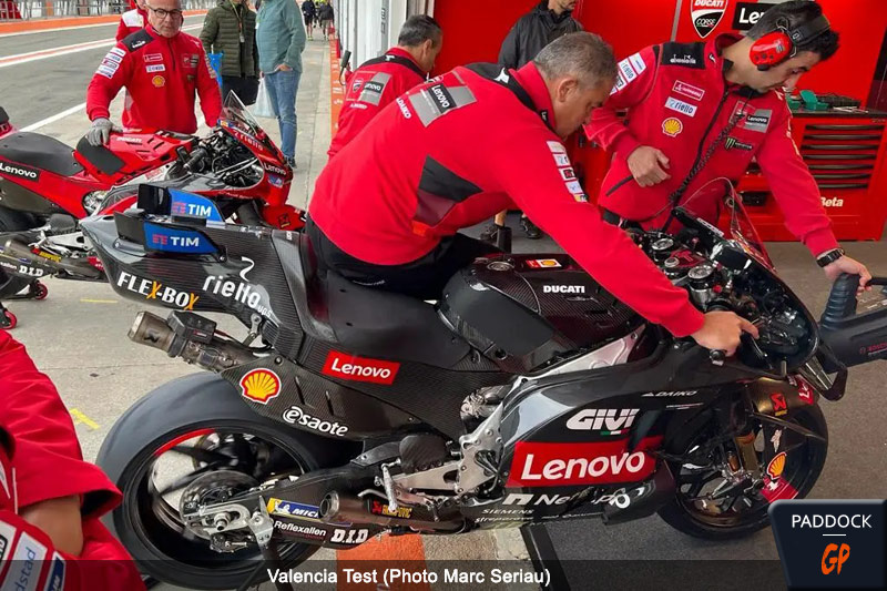 Chez Ducati, Les nouveaux pilotes rouleront à Valence uniquement avec la moto qu’ils auront la saison prochaine , pas de tests comparatifs à leur disposition pour éviter toute confusion. Les GP23 n’auront pas les dernières mises à jour , comme le nouvel abaissement de départ. Le GP24 est une évolution avec de nouvelles fonctionnalités concernant le moteur et le châssis. Aucune innovation aérodynamique.