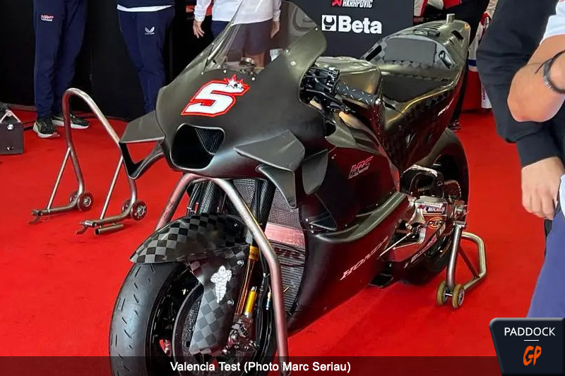 Chez Honda, en plus de la moto 2023, Marini et Mir feront tester le prototype de moto par Stefan Bradl , avec une nouvelle aérodynamique, une nouvelle section arrière avec amortisseur inertiel, de nouveaux échappements et un nouveau moteur.