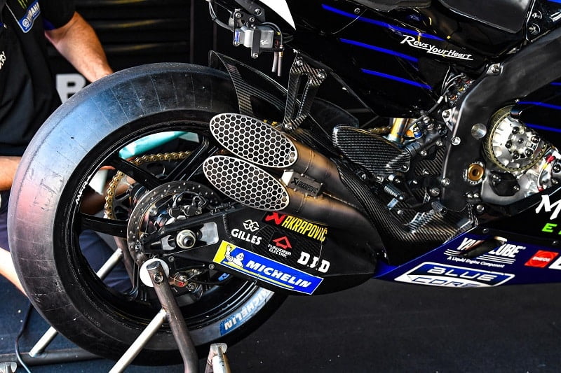 Voici le fameux double échappement de la Yam (photo © motogp.com / Dorna) :