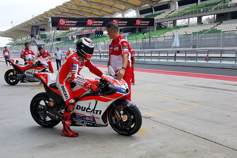 Chez Ducati, on a déjà commencé avec des essais privés à Serpang. Lorenzo était présent dans le box et le voilà déjà en rouge sur la piste. Quant à Dovizioso, il nous promet des nouveautés.