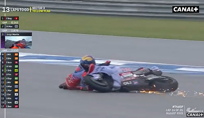 Si vous avez manqué les excellents départs du leader du championnat Jorge Martin (Prima Pramac Racing) et de Fabio Quartararo (Monster Energy Yamaha MotoGP), la maîtrise de tous ces champions à la limite sur la piste mouillée, l’expérience et le contrôle total de Francesco Bagnaia (Ducati Lenovo Team) pour gagner et rester au contact au classement général du championnat, mais aussi malheureusement, le passage en force de Franco Morbidelli sur Fabio Quartararo ou la chute désespérée de Marc Marquez (Gresini Racing MotoGP™), la chaîne cryptée vous offre une petite séance de rattrapage en accéléré.