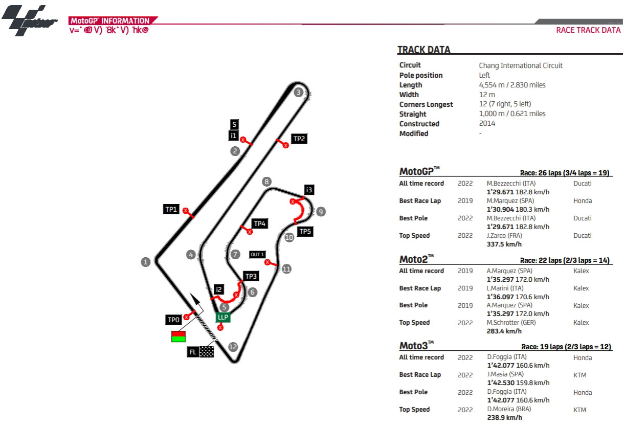 Rappelons-nous que le Chang International Circuit à Buriram n’a accueilli le MotoGP qu’à 4 reprises et, parmi les pilotes actuels à plein temps, Marc Marquez détient le plus grand nombre de victoires (2xMotoGP™) devant Jorge Martin (1xMotoGP™) et Miguel Oliveira (1xMotoGP™), alors que les pilotes ayant le plus grand nombre de podiums en catégorie reine sont Marc Marquez (2), Maverick Viñales (2), Francesco Bagnaia (2), Miguel Oliveira (1), Fabio Quartararo (1), Jack Miller (1), Brad Binder (1) et Jorge Martin (1).