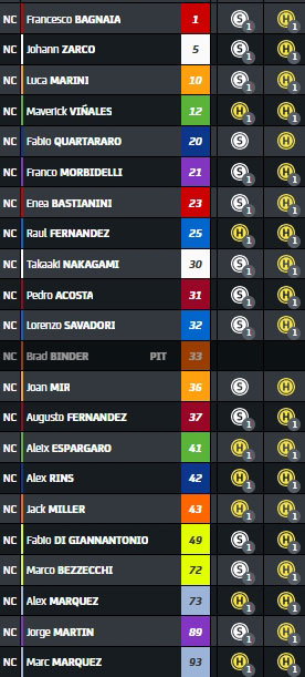 | Course | Martin, Bagnaia, Binder (Voir ici) | (Voir ici) |