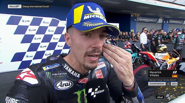 A peine descendu de sa Yamaha M1 officielle après avoir obtenu la 3e position du Grand Prix de Thaïlande, Maverick Viñales s’est confié devant la caméra du site MotoGP.com avec une certaine satisfaction...