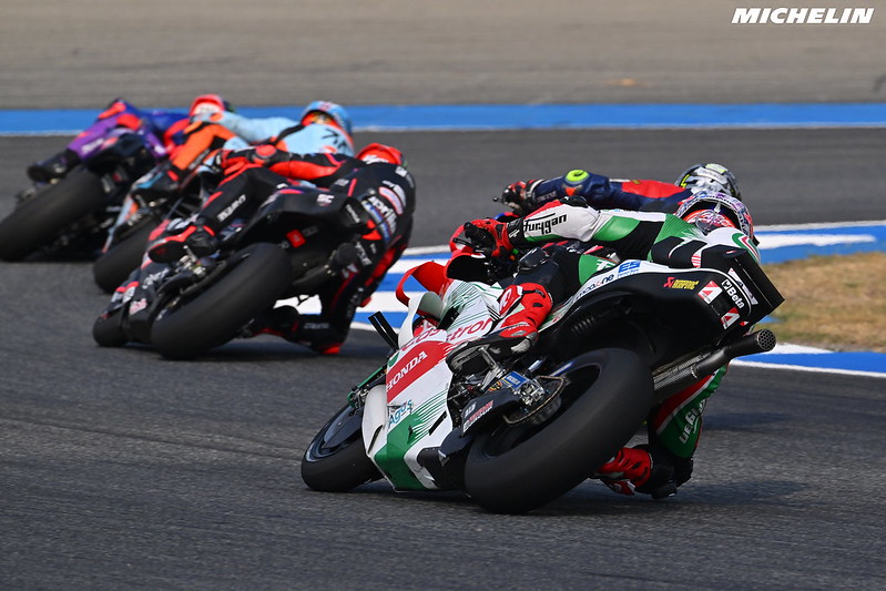 « Oui, bien sûr. C’est vrai. Je ne sais pas si c’est le plus petit, mais c’est un bon écart, même par rapport au Sprint d’hier. Je pense donc que nous avons toujours un problème lorsque le pneu est frais ou lorsque nous pouvons utiliser plus d’adhérence avec un pneu arrière tendre. Nous perdons sur le premier tiers de la course, dans la mesure où nous n’utilisons pas bien le pneu neuf. Parce que lorsque nous comparons notre performance de l’année dernière avec l’autre moto, nous perdions le plus de temps sur les 7 ou 9 premiers tours. Peut-être qu’aujourd’hui le rythme est un peu plus lent et que cela m’aide à trouver le bon rythme. Mais quand j’ai vu Mobidelli et Ogura en vie, parce que j’étais avec ce groupe dans le top 10, je me suis dit ‘Reste là, il y a quatre gars devant toi. Reste concentré, peut-être que tu auras quelque chose de bon à la fin’. Et c’est ce qui s’est passé ».