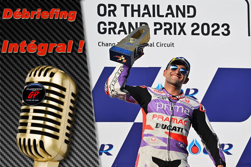 Mesdames et messieurs, je vous souhaite un très bon après-midi. Au terme d’un incroyable Grand Prix de Thaïlande, ici sur le circuit international de Chang, le quatrième podium le plus proche dans l’histoire de la catégorie reine. Toutes mes félicitations aux trois premiers pilotes, le vainqueur de la course Jorge Martin du Prima Pramac Racing , le deuxième, le champion du monde Pecco Banaia du Ducati Lenovo, et le pilote Red Bull KTM Factory Racing Brad Binder, qui s’est battu avec acharnement jusqu’au dernier virage. Tout d’abord, messieurs, merci pour ce spectacle extraordinaire. J’ai trouvé les fans du monde entier buzzer sous le charme de cette classique de Buriram.