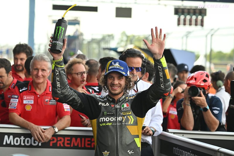 En Q2, le rythme s’est encore accéléré, alors que la température ambiante montait. Marco Bezzecchi a décroché sa toute première pole position en MotoGP en signant un nouveau record du circuit en 1min29s671, devant Jorge Martin et Francesco Bagnaia qui l’ont accompagné sur la première ligne de départ.