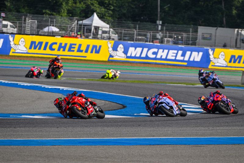 Pour cette 18ème manche du Championnat du Monde de MotoGP ™ 2024, Michelin Motorsport et ses partenaires se sont retrouvés en Thaïlande, sur le circuit de Buriram. Ce dernier est situé à 400 km au nord-est de Bangkok, la capitale du pays, dans une région où la population est friande de courses de motos. Malgré la météo chaude et humide, plus de 205 000 personnes ont franchi les grilles du Chang International Circuit au cours des trois jours de manifestation.