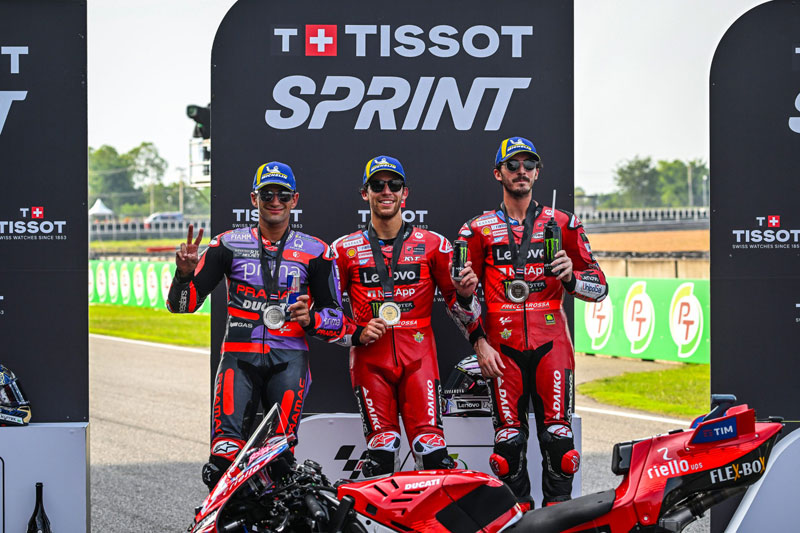 Samedi après-midi, c’est Enea Bastianini (Ducati Lenovo Team) qui a remporté la Tissot Sprint, devant Jorge Martin (Prima Pramac Racing), et Francesco Bagnaia (Ducati Lenovo Team).