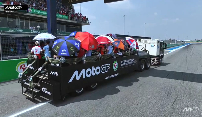 La parade des pilotes MotoGP a su faire sa place dans le programme du week-end en devenant une tradition qui satisfait à la fois les spectateurs présents, aujourd’hui sur le Chang International Circuit de Buriram pour le Grand Prix de Thaïlande, mais aussi les pilotes pour qui il s’agit du seul moment où ils peuvent communiquer tous ensemble sans enjeu.