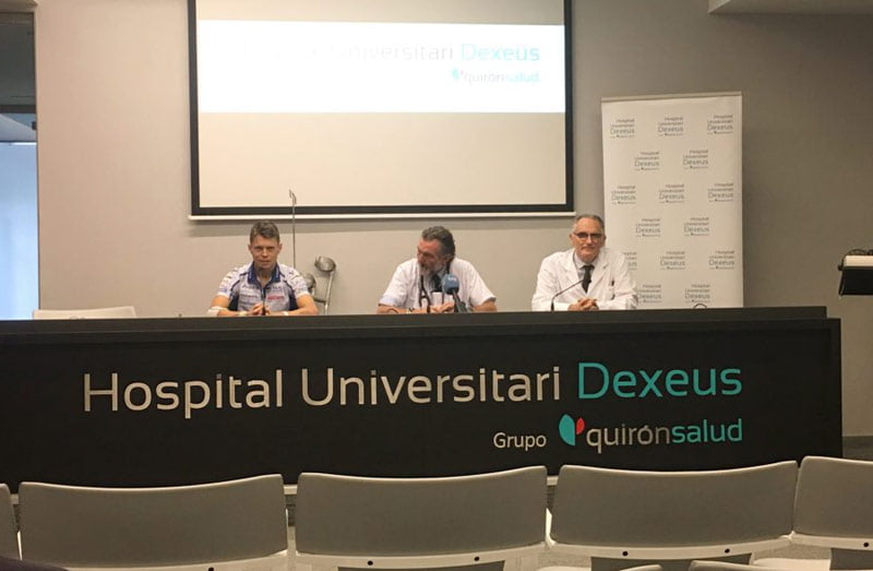 Après sa triple fracture du fémur, du tibia et du péroné de la jambe droite survenue en FP4 à Silverstone, le pilote de l’équipe Reale Avintia Racing, Tito Rabat, s’est adressé aujourd’hui aux médias à l’hôpital universitaire Dexeus du groupe Quirón Salud. A côté du pilote catalan, figuraient également les médecins Ángel Charte, Xavier Mir et Ignacio Ginebreda, qui ont suivi l’évolution de la blessure de l’Espagnol depuis le moment de l’accident.