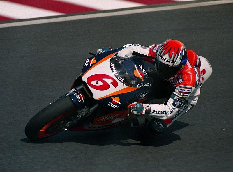 7 pole en carrière, accompagnées de 36 podiums. C’est imbattable. Malheureusement, une terrible blessure au poignet vient entacher son année 1998, qui aurait dû être sa meilleure. Ce dernier n’abandonne pas et revient encore plus fort en 1999 pour enregistrer son plus haut total de points : 211. Avec trois victoires, il assure en l’absence de Doohan et termine troisième du championnat, à neuf longueurs de Kenny Roberts Jr. pour la deuxième place. Sans la star australienne, Honda place deux pilotes sur le podium final. Grande performance pour un grand pilote.