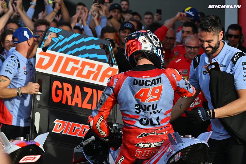 Fabio Di Giannantonio a été la révélation de la fin de saison 2023 de MotoGP, démontrant ainsi que ce sport est avant tout mental. Animé par l‘énergie du désespoir de se voir sorti à jamais du paddock des Grands Prix, ce qui aurait été quasiment synonyme de la fin de sa carrière, le pilote Gresini s’est montré sous un jour conquérant, révélant un talent que l’on ne s’attendait plus à voir. Un sursaut salvateur qui lui a valu de se remettre dans l’axe et en valeur sur un marché des transferts secoué par la décision de Marc Marquez de quitter Honda. Ce en quoi Luca Marini a vu une opportunité, libérant une place pour un « DiGia » qui n’en demandait pas temps …