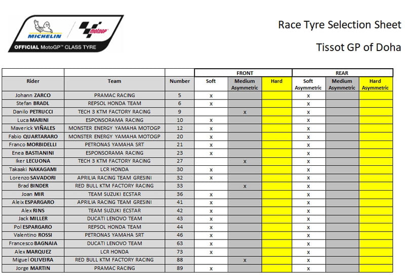 Des vents violents et tourbillonnants tout au long du week-end sur le Losail International Circuit ont sérieusement compliqué la tâche des pilotes, ainsi que les réglages des machines et les choix de pneumatiques. La majorité des pilotes a opté pour le MICHELIN Power Slicks Soft avant et arrière pour la course, hormis les quatre pilotes KTM qui avaient opté pour un Medium avant asymétrique.