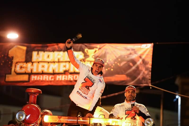 Tout est parti du protocole de la célébration du septième titre de Marc Márquez il y a deux semaines. Afin de pouvoir s’adresser à la foule venue en masse le féliciter, il était prévu que le champion espagnol apparaîtrait au balcon de la mairie de Cervera. Le problème est qu’à ce balcon est accroché une pancarte de soutien à des prisonniers politiques catalans, et s’afficher au balcon revenait à dire que Márquez soutenait cette action. Il a donc été décidé de changer cette partie de la célébration et de le faire descendre directement dans la rue.