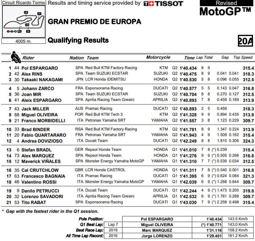 Alors que Joan Mir est optimiste quant à la course, ses plus proches poursuivants du championnat ont des problèmes. Fabio Quartararo a dû se contenter de la 11e place. Et Maverick Vinales n’est même pas arrivé en Q2 tandis qu’il devra partir de la voie des stands à cause d’un moteur neuf pris hors de l’allocation annuelle épuisée.
