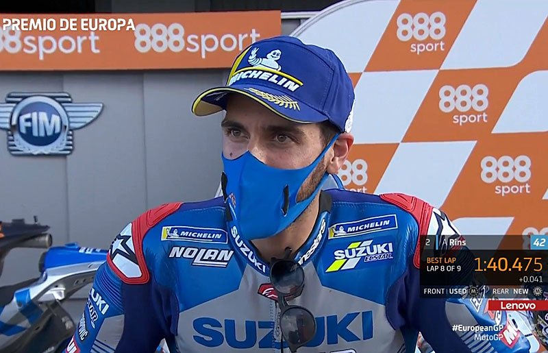 A peine descendu de sa Suzuki GSX-RR après avoir obtenu la 2e position sur la grille de départ du Grand Prix d’Europe, Álex Rins s’est confié devant la caméra du site MotoGP.com avec la joie de quelqu’un qui n’a pas lâché l’affaire au championnat…