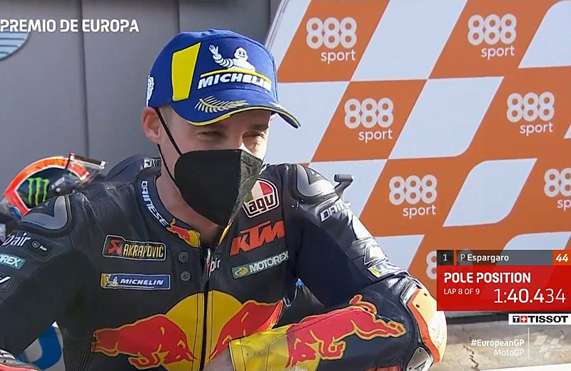 A peine descendu de sa KTM RC16 officielle après avoir obtenu la pole position sur la grille de départ du Grand Prix d’Europe, Pol Espargaró s’est confié devant la caméra du site MotoGP.com avec la joie d’obtenir sa deuxième pole de l’année, là où il était monté sur le podium l’an dernier…