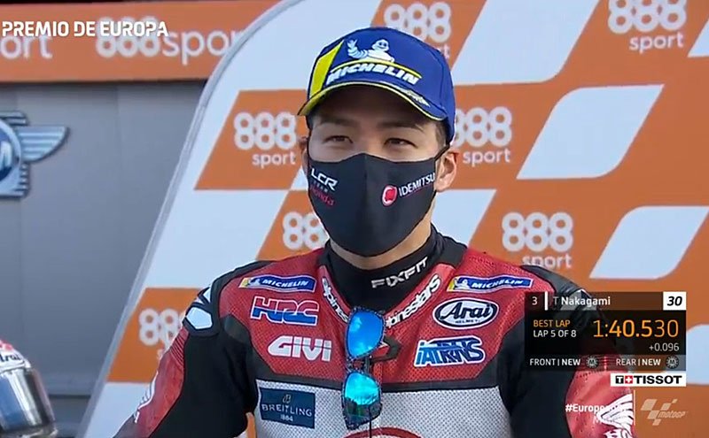 A peine descendu de sa Honda RC213V satellite du team LCR Honda après avoir obtenu la 3e position sur la grille de départ du Grand Prix d’Europe, Takaaki Nakagami s’est confié devant la caméra du site MotoGP.com avec la joie d’avoir obtenu sa deuxième première ligne d’affilée, et donc la possibilité de réparer sa bévue d’Aragon…