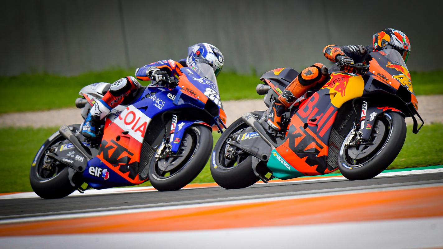 Mais il n’oublie pas son second pilote : « bien sûr, je ne peux pas finir sans penser à Iker Lecuona, qui a attendu toute l’année cet événement à Valence. C’est son Grand Prix national, il connaît très bien la piste et il est rapide ici et quand il voit à quel point les trois KTM étaient compétitives, je suis sûr qu’il aurait été avec les autres. J’espère qu’il n’a pas trop pleuré derrière l’écran et j’espère vraiment qu’il pourra revenir avec nous la semaine prochaine, parce qu’il mérite amplement d’être ici et qu’il nous manque beaucoup ».