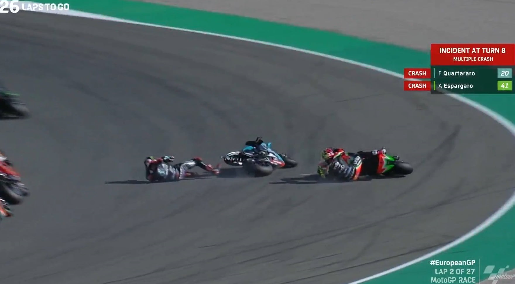 La faute à une chute peu après le départ, mais aussi à une Yamaha blessée après l’accident. Le Français explique ainsi ce scénario cauchemar : « la sensation n’était pas géniale après le warm up. En course, Aleix Espargaró a glissé devant moi, j’ai freiné un peu plus et j’ai chuté. Je suis reparti mais j’ai eu un petit problème avec le système d’abaissement arrière, qui est resté en position basse, donc je n’ai pas pu suivre un rythme rapide ».