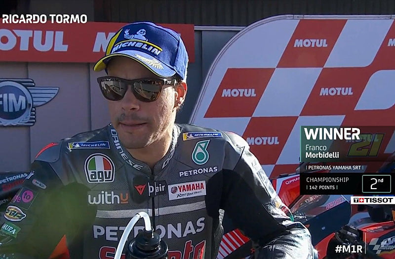 A peine descendu de sa Yamaha YZR-M1 satellite du team Petronas Yamaha SRT après avoir remporté le Grand Prix de la Communauté Valencienne sur le circuit Ricardo Tormo de Valence, Franco Morbidelli s’est confié devant la caméra du site officiel MotoGP.com avec la joie d’avoir obtenu sa troisième victoire de la saison…