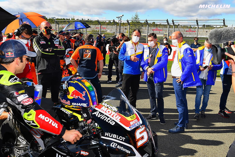 Johann Zarco : « Je n’étais pas agacé. Clairement, Rins m’a passé mais j’étais plutôt content d’avoir un bon moteur et de pouvoir reprendre l’avantage en ligne droite. Sur ce début de course, j’étais en difficulté. La vitesse que j’espérais, elle n’y était pas. L’entrée du premier virage était vraiment compliquée : je ne sais pas si le vent qui s’est levé s’est fait ressentir davantage mais il était difficile de réussir à ralentir pour rentrer dans le virage. Ma prise de frein n’était pas du tout violente mais je pense que j’ai sans doute dû rentrer un peu plus vite. En général, ça ne chute pas, mais là, j’ai chuté. Je suis donc déçu de ne pas terminer la course. J’avais de bonnes envies de bien faire mais j’étais un peu en difficulté. J’espérais pouvoir prouver mieux. Est-ce que le choix de ce pneu avant, qui était très bon la semaine dernière, a été moins bon aujourd’hui vu le rythme et qu’il faisait plus chaud ? Peut-être que le médium aurait été mieux, comme a fait Miller. Donc un petit doute sur le pneu, et déçu. »