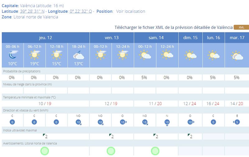 Le service officiel de prévisions météorologiques espagnoles ne s’étant globalement pas trompé lors du Grand Prix d’Europe à Valence, espérons qu’il en soit de même cette semaine pour le Grand Prix de la Communauté Valencienne disputée sur le même circuit, puisqu’il annonce du beau temps tous les jours, et pas une goutte de pluie !